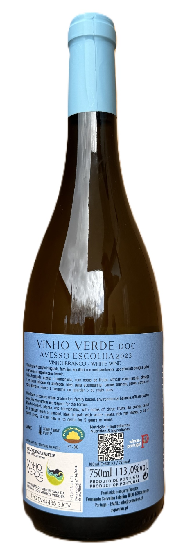 Aromas: Nariz que revela desde cedo notas de fruta branca fresca (maçã verde, pera firme), nuances cítricas como lima e casca de tangerina, e uma componente mineral nítida. Surgem ainda leves notas florais e um discreto toque de erva fresca, mantendo a elegância e a descrição típicas do Avesso.