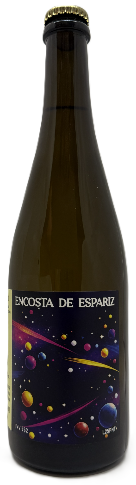 Vinho branco com intervenção enologica minima, engarrafado sem filtração e com açucar residual que provoca fermentação natural em garrafa, processo tipico e acestral muito utilizado na região dos vinhos verdes.